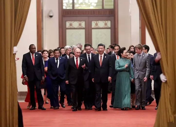 歡迎宴會在人民大會堂舉行,習近平主席在宴會上致辭,他對大家出席“一帶一路”國際合作高峰論壇表示熱烈歡迎,并強調“ ‘一帶一路’建設正站在新的起點上,開啟新的征程。只要我們相向而行,心連心,不后退,不停步,我們終能迎來路路相連、美美與共的那一天。”隨后,文藝晚會《千年之約》在國家大劇院獻演,晚會用多種藝術形式展現陸上絲綢之路和海上絲綢之路等商旅貿易之路的過去、現在和未來, 呈現中國文化開放包容、大氣恢弘的內涵。