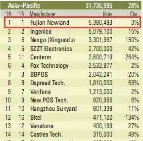 2016年亞太地區(qū)POS供應(yīng)商排行