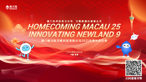 3月9日,澳門新大陸萬博科技2023年度總結表彰大會暨2024年度工作計劃會在珠海隆重舉行。本次大會以“Homecoming Macau·25,Innovating Newland·9”為主題,旨在立足于澳門回歸25周年之際,展望創新發展新未來。 新大陸科技集團董事長胡鋼、副總裁陳祥杰、財務副總監聶尚東等領導嘉賓出席本次活動。新大陸萬博總經理劉金東攜班子領導及公司全體員工共襄盛會,回首奮斗歷程,盤點輝煌業績,共話美好藍圖,凝心聚力再創佳績。